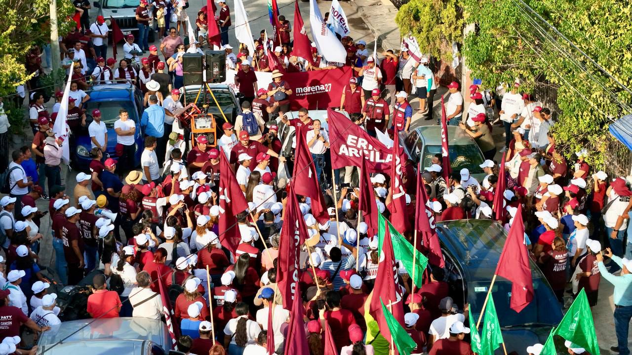 Entre las banderas ondeando, porras, matracas y batucada, la candidata de Morena, PT y PVEM, encontró respaldo de los vecinos a sus propuestas de campaña para una mejor ciudad, las cuales se basan en tres ejes fundamentales: “Justicia Social”, “Construcción de Paz” y “Gobierno Humanista”.