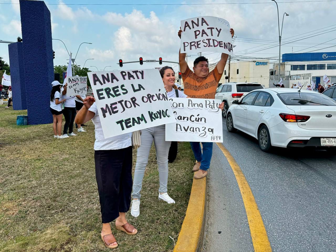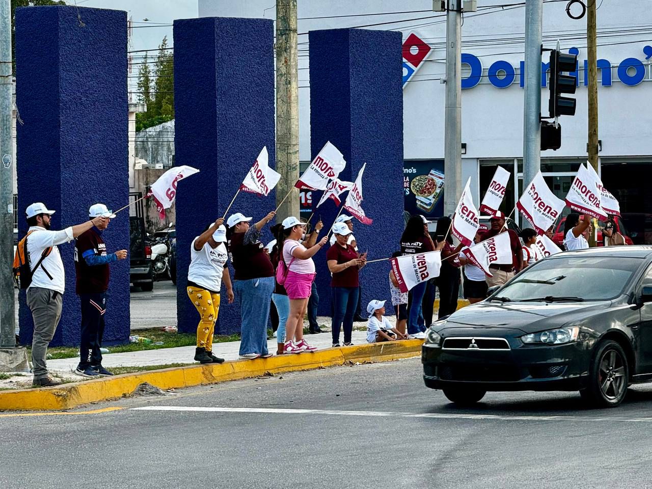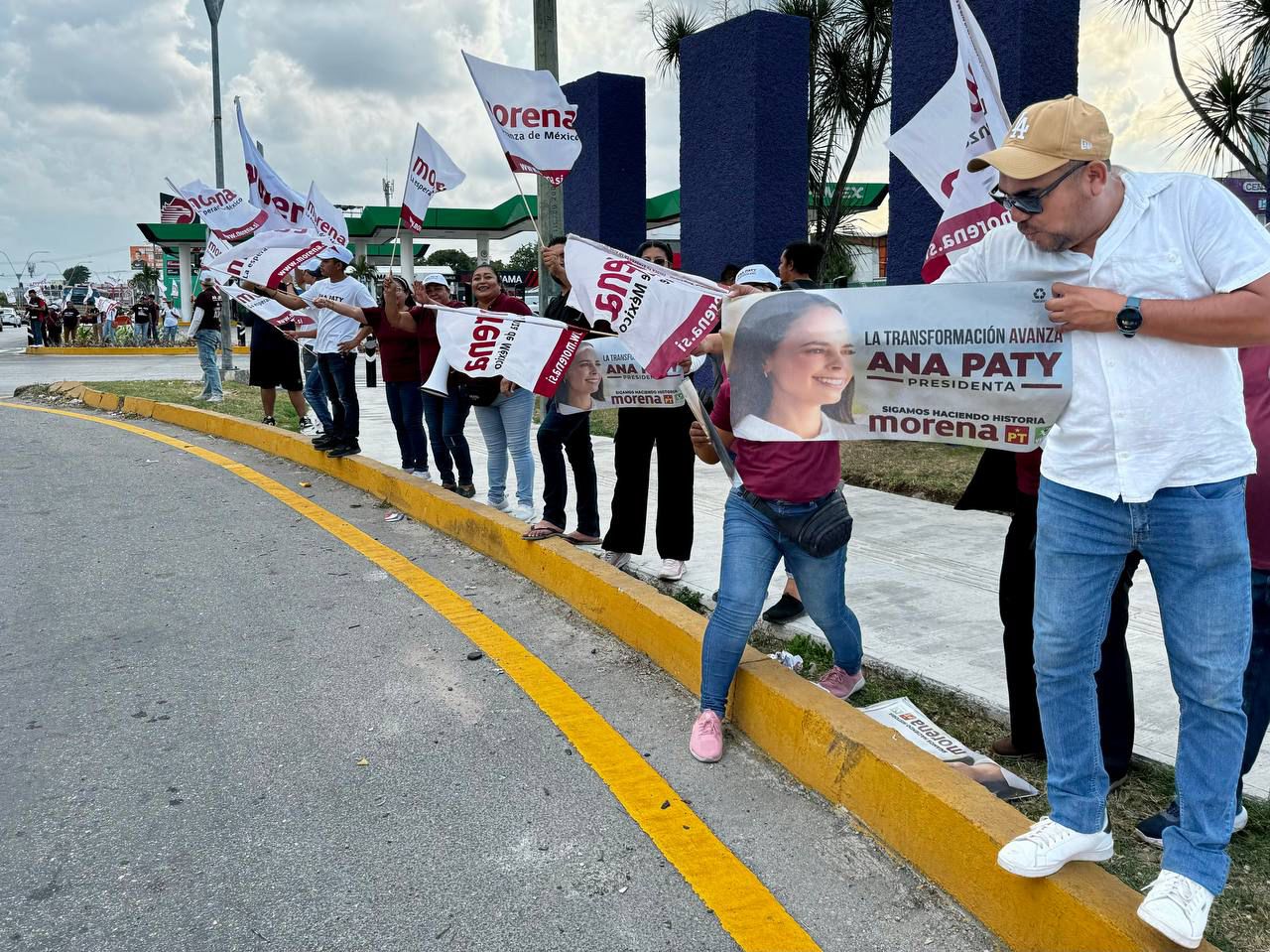 En dicha intersección, decenas de simpatizantes del movimiento se presentaron con banderas y carteles para contagiar el ánimo morenista con los ciudadanos, quienes recibieron con sonrisas y tocando el claxon a los presentes.
