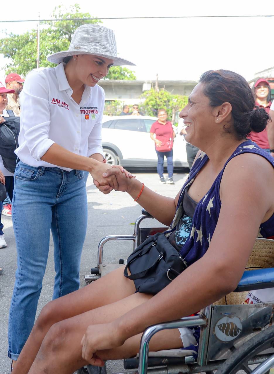 Cancún, Q. R., a 28 de abril de 2024.- La candidata a la presidencia municipal de Benito Juárez por la Coalición “Sigamos Haciendo Historia”, Ana Paty Peralta, visitó a las y los emprendedores, así como ciudadanos que se encontraban haciendo sus compras en el Mercado de la Unidad en la Supermanzana 101, con quienes se comprometió a reforzar la seguridad en la zona y a la digitalización de trámites burocráticos, con la intención de garantizar su bienestar, la conservación de sus bienes y acelerar los procesos en la tramitología de documentos como permisos y licencias de funcionamiento.