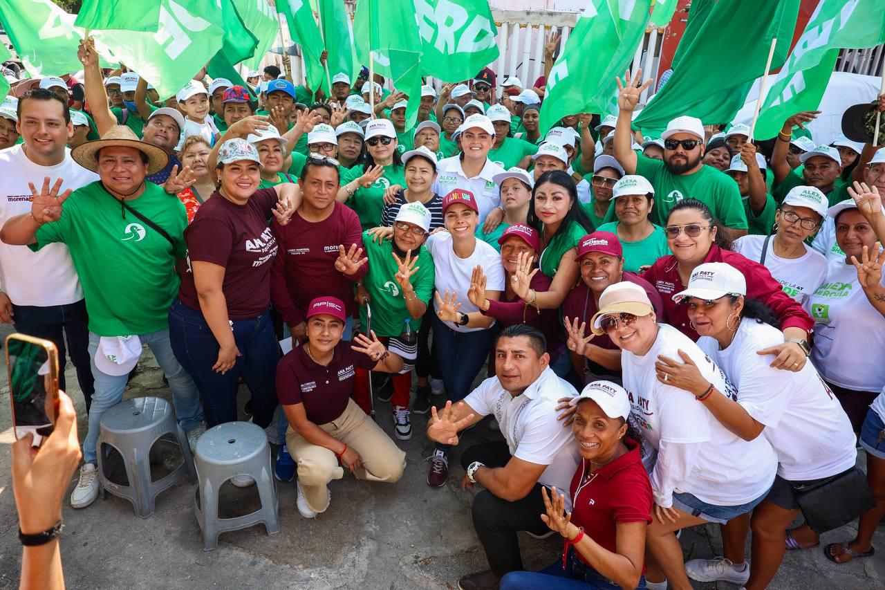 Cancún, Q. R., a 29 de abril de 2024.- “Se ve, se siente, ¡Ana Paty está presente!”, así recibieron a la candidata a la presidencia municipal de Benito Juárez, Ana Paty Peralta, durante sus caminatas por las calles de las Supermanzanas 102 y 76, donde frente a las y los vecinos, recalcó que trabajará sin descanso para llevar bienestar y paz a las familias, porque su compromiso con los cancunenses y la Cuarta Transformación es inquebrantable.