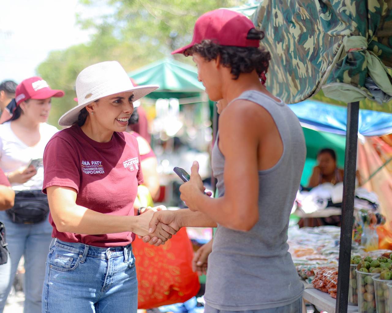 Cancún, Q. R., a 09 de mayo de 2024.- La candidata a la presidencia municipal de Benito Juárez, Ana Paty Peralta, fue recibida con gran respaldo y entusiasmo por parte de la ciudadanía durante su recorrido por el tianguis de la Supermanzana 227, donde reconoció a las y los comerciantes como un sostén fundamental para la economía circular de las familias cancunenses, comprometiéndose a través de sus propuestas, a dotar de mayor seguridad, bienestar y visibilidad al gremio tianguista.