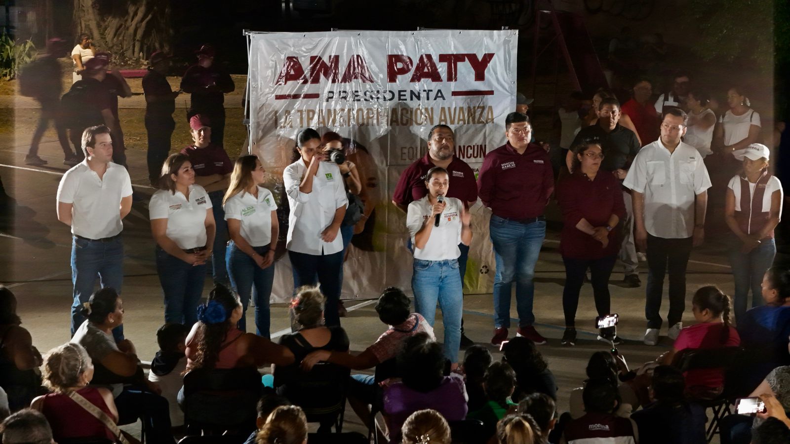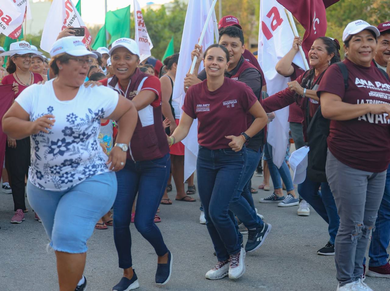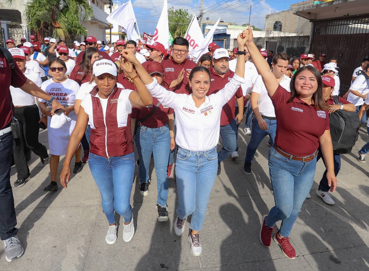Caminando las calles durante su recorrido, Ana Paty, acompañada por la candidata a diputada local, Alexa Murguía, e integrantes de su planilla, fue testigo de la determinación de las y los tianguistas, que, entre puestos de comida, ropa, utensilios, frutas y verduras, demostraron su respaldo al proyecto municipal, y, además, externaron su apoyo a la construcción del segundo piso de la transformación de la mano de la gobernadora Mara Lezama y la futura presidenta de México, Claudia Sheinbaum.