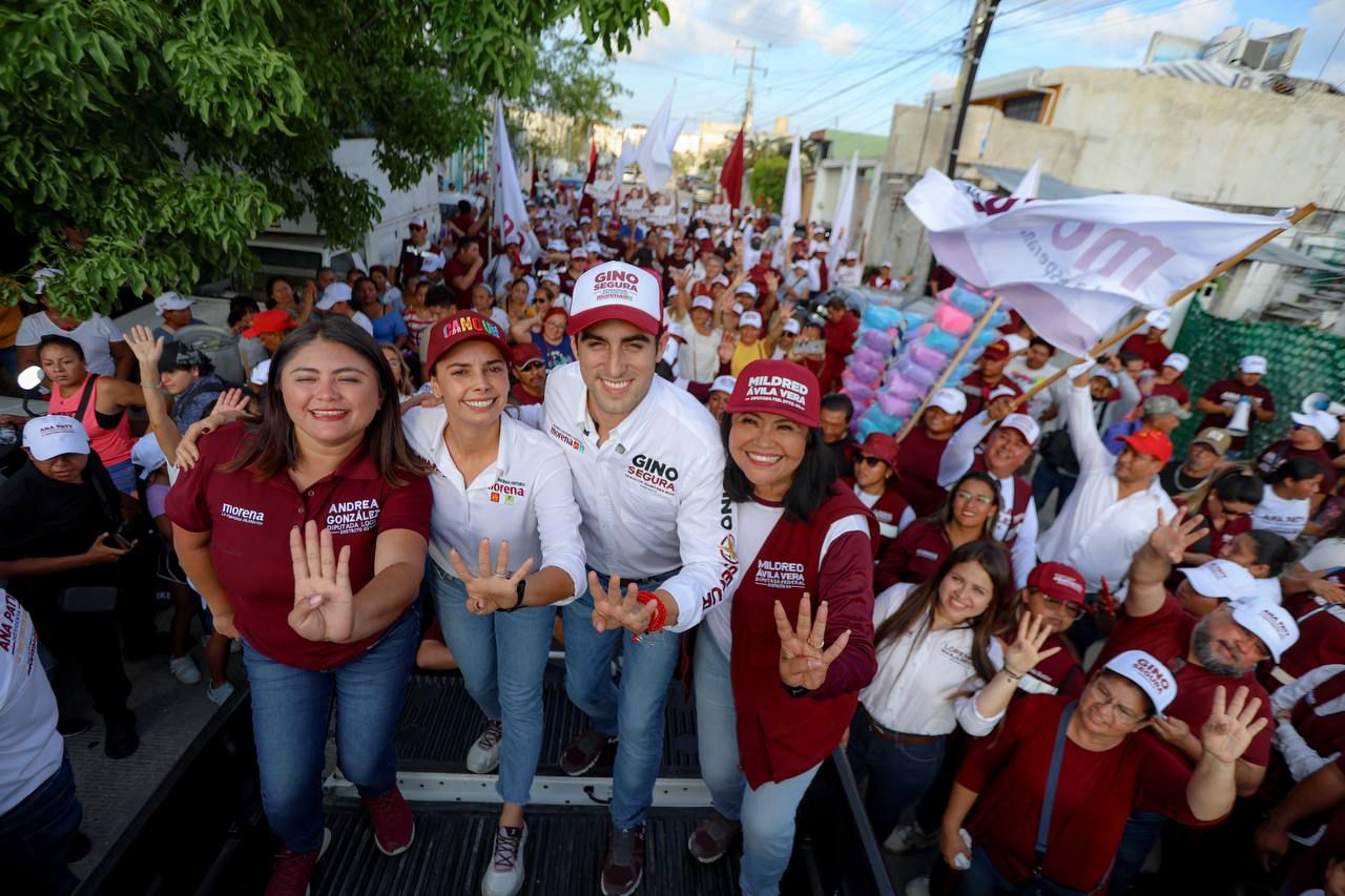 En su caminata por las colonias, la aspirante morenista estuvo acompañada por los candidatos a senador, Eugenio Segura; a diputada federal, Mildred Ávila; a diputada local, Andrea González y a diputado local, Eric Arcila Arjona; quienes contagiaron a los presentes de gran entusiasmo.