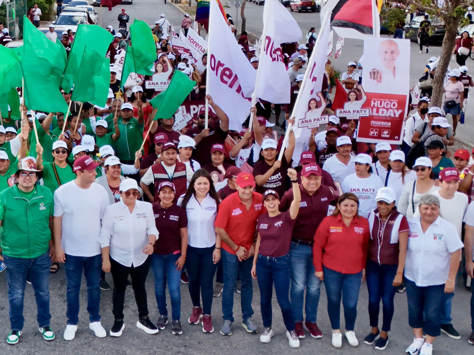 Bajo un caluroso atardecer, Paseos Nicté y Cielo Nuevo se llenaron de color guinda, con porras, banderas, matracas y batucada. La caminata fue contagiando el ánimo a las y los residentes, quienes desde sus puertas y ventanas levantaron su mano izquierda con la señal de Cuarta Transformación en apoyo al proyecto de Ana Paty.